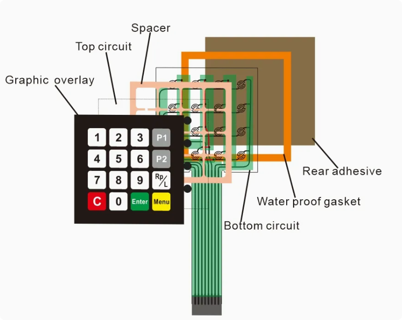Membranbrytarknappsats, grafisk överlägg, namnskylt, trycksensor, silikonknappsats och silikonprodukter